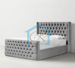 Beauty Winged Bed Luxury Plush Velvet Upholstered Designer Bed Frame