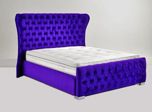 Winged Bed Plush Velvet Fabric Upholstered Beds