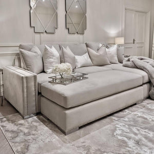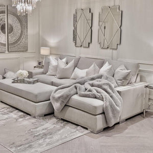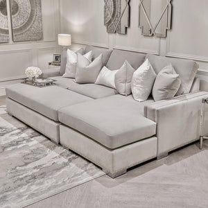 Alaska Lyton Cream Plush Velvet 4 Seater L-Shape Left Corner Sofa With Large Footstool