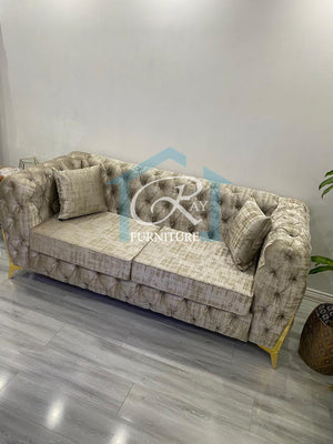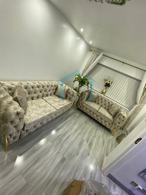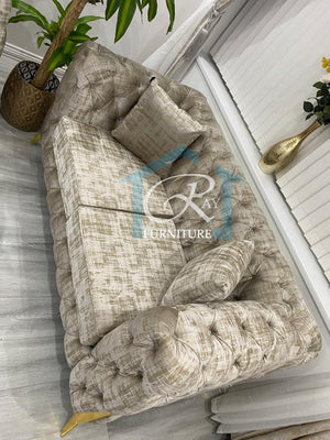 New Laurant Gold Fabric Spanish Full Chesterfield Sofa 3 Seater With 2 Seater Set