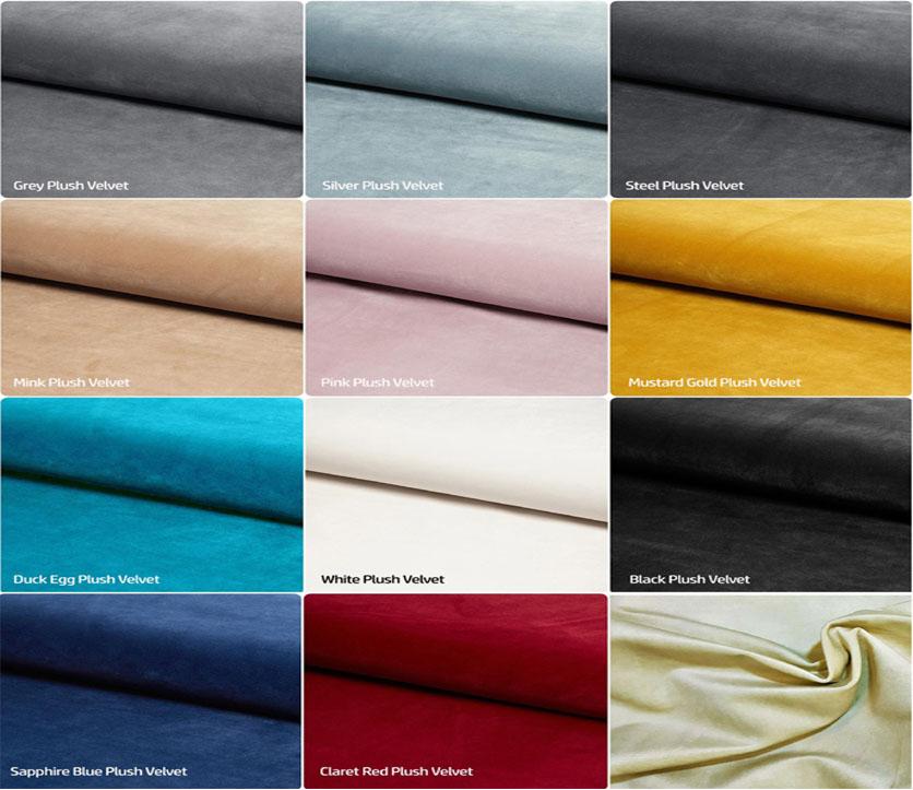 Fabric: Available in Plush Velvet, Crushed Velvet, Plain Velvet & Chenille