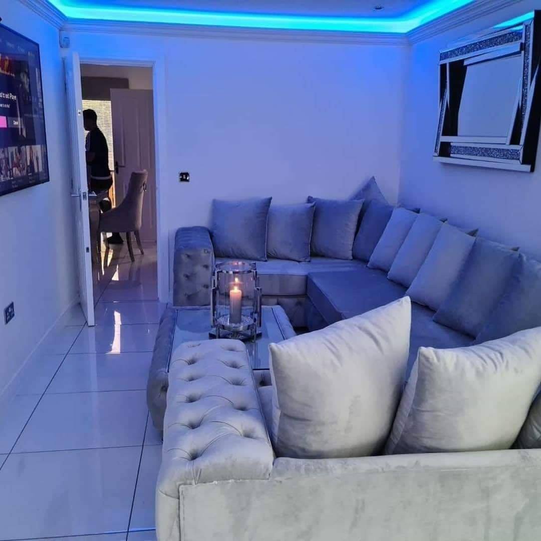 Ashton Fullback 6 Seater Silver Plush Velvet U-Shape Corner Sofa