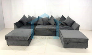 Belgravia U-Shape Grey Plush Velvet Corner Sofa